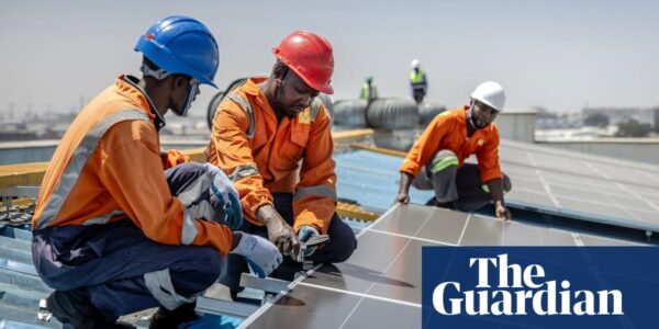 Technicians install solar panels on a factory roof in Nairobi, Kenya. Photograph: Luis Tato/AFP/Getty Images Technicians install solar panels on a factory roof in Nairobi, Kenya. Photograph: Luis Tato/AFP/Getty Images Renewable energy Hopes rise for green economy boom at Africa…