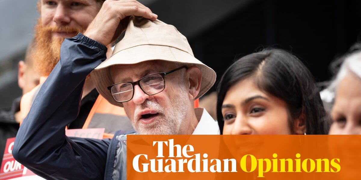 Jeremy Corbyn and Zarah Sultana on a picket line outside London Euston train station, 18 August 2022. Photograph: Stefan Rousseau/PA