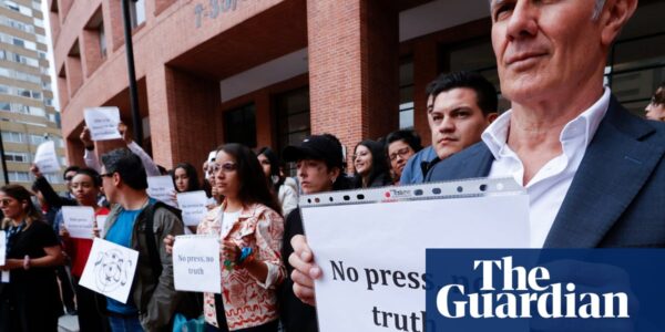 Journalists demonstrated outside the EFE news agency offices in Bogotá, Colombia, earlier this month to denounce the killing of journalists in Gaza. Photograph: Mauricio Dueñas Castañeda/EPA Journalists demonstrated outside the EFE news agency offices in Bogotá, Colombia, earlier this month…