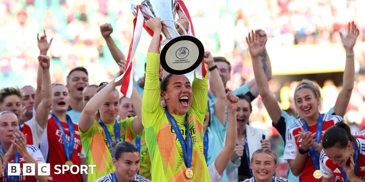 Image source, Getty ImagesArsenal beat Barcelona 1-0 in Lisbon in May to win the Women’s Champions League for the second time