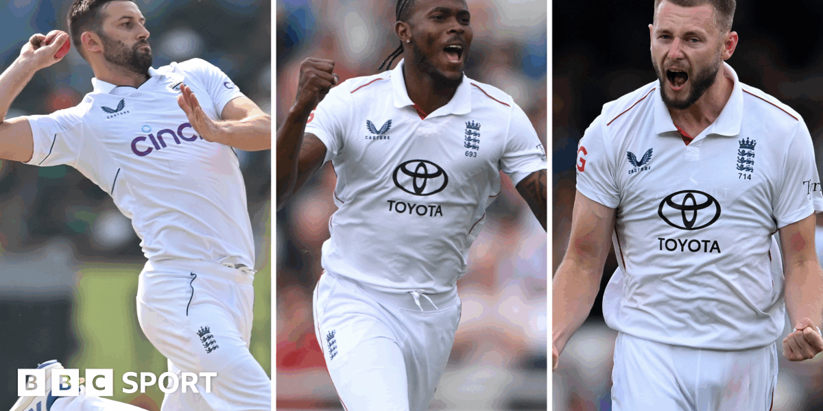 Image source, Getty ImagesMark Wood, left, Jofra Archer, centre, and Gus Atkinson are all capable of bowling at high speed and generating steep bounce