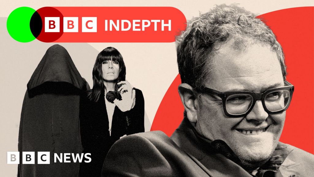 BBC A treated image of Alan Carr posing in a framed portrait BBC