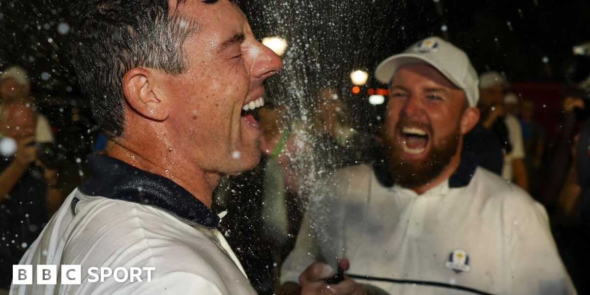 Image source, Getty ImagesMcIlroy and Lowry were at the centre of Europe’s celebrations on Sunday evening