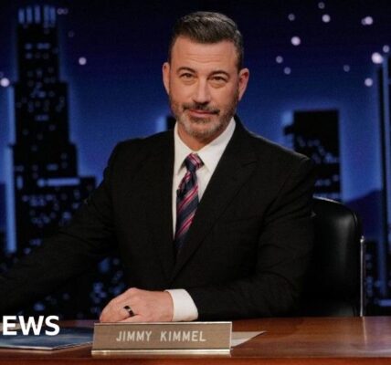 BBC Chancellor of the Exchequer Rachel Reeves, wearing a dark suit and white blouse, is standing in front of a red background. She is behind a lecturn that bears the slogan: Renew Britain.BBC